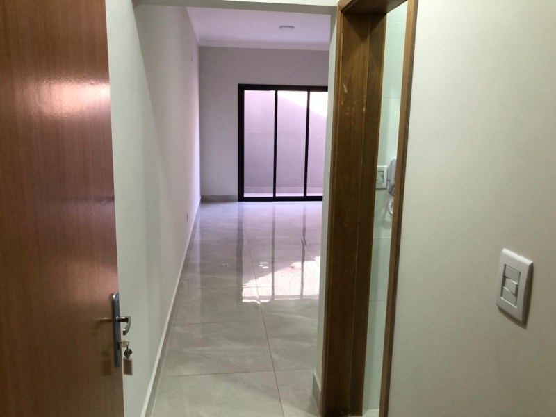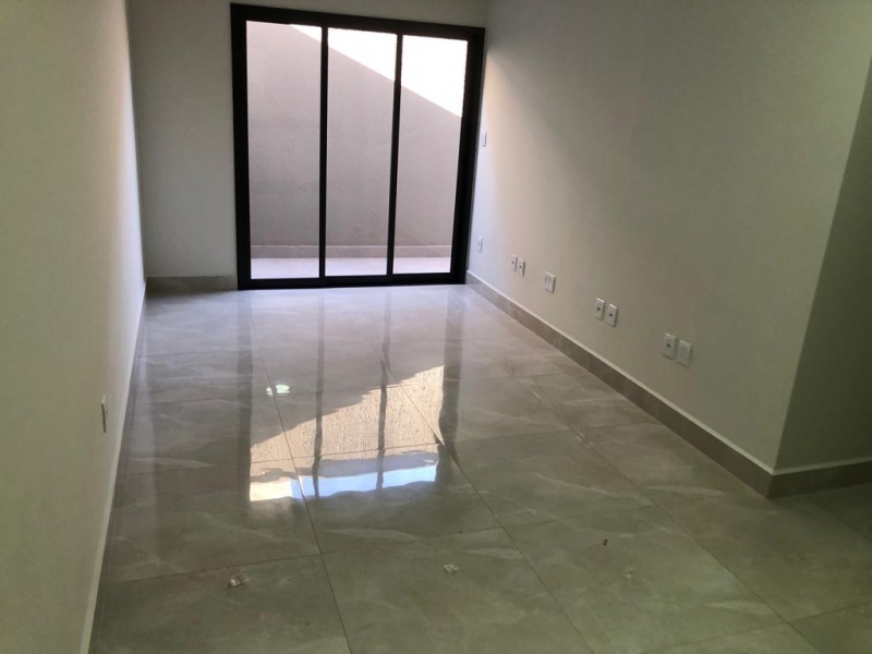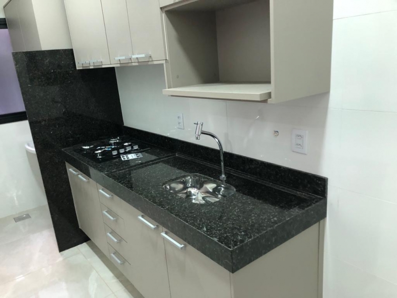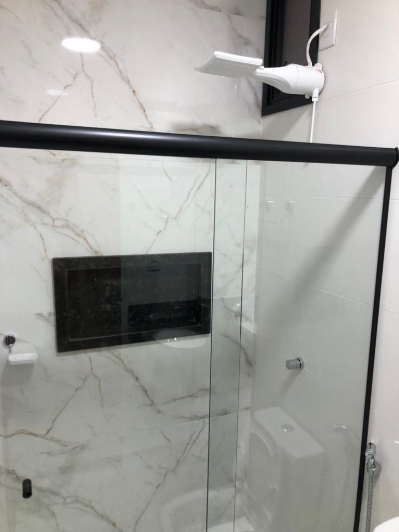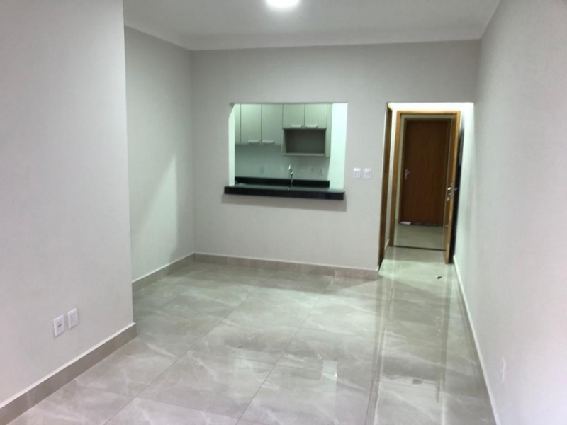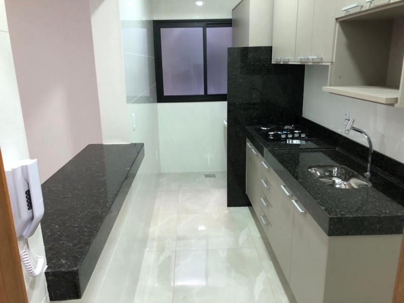 02 quartos com armários embutidos, sendo 01 suíte, banheiro social, sala, copa, cozinha planejada com fogão cooktop, área de serviço, e uma vaga na garagem.